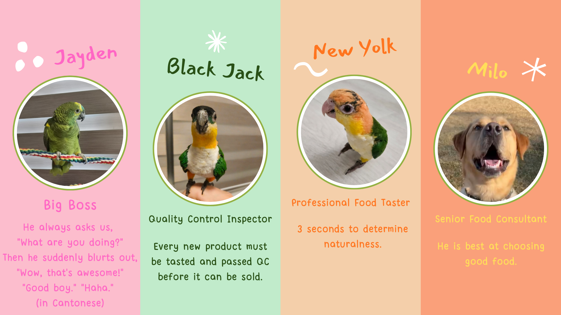 We are incredibly grateful for the companionship of our pets — they fill our lives with joy and positive energy. Whether it's Black Jack's curiosity, New Yolk's eagerness for food, Jayden's haughty gaze, or Milo's understanding nature, seeing them happy makes us happy too.