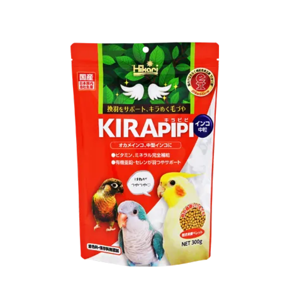 如果以種子為主食飼養鳥類,則需要添加各種輔助食物,例如提供維生素的綠葉蔬菜和提供礦物質的砂礫,但每天提供新鮮的輔助食物可能比較困難。此外,有些種子脂肪含量高,容易導致肥胖。 Hikari Kirapipi 鸚鵡飼料是一款全面營養的飼料,只需水和本產品,即可幫助鳥類健康成長。