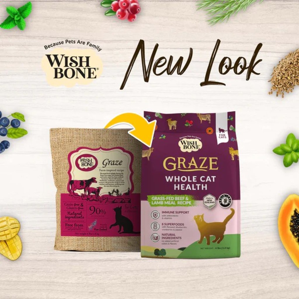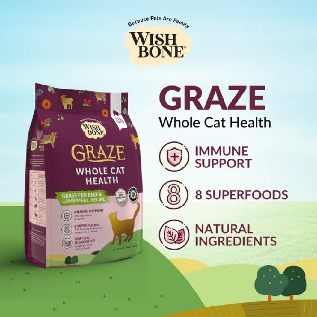 使用 Wishbone Graze 讓您的貓咪感受紐西蘭青翠山丘和山谷的豐富滋味。 Wishbone Graze 採用草飼紐西蘭牛肉和羊肉製成,僅採用最優質的當地食材精製而成,這些食材因其精緻的風味和營養豐富的功效而被選中。每一口都會讓你的貓咪渴望更多!