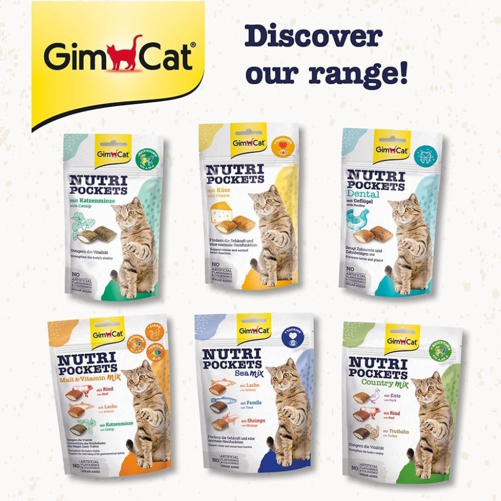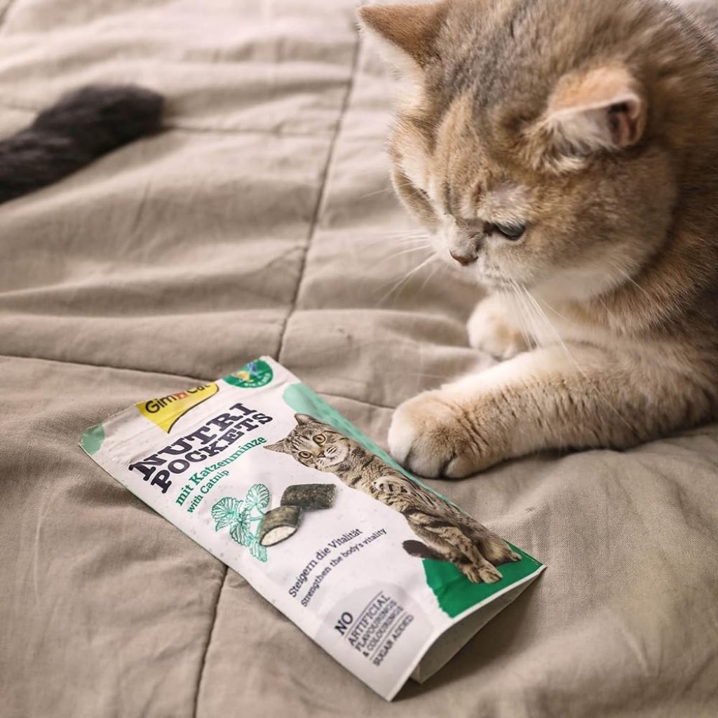 GimCat Nutripockets香脆夾心可口的餡料。含有令貓開胃及令情緒舒緩的貓薄荷和多種維他命包含12個必需的維他命,有利於增強體內的自然防禦能力。
