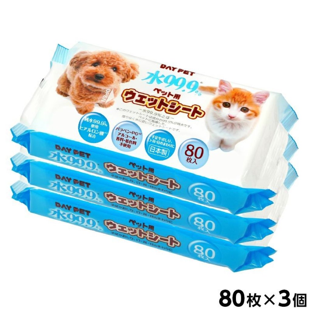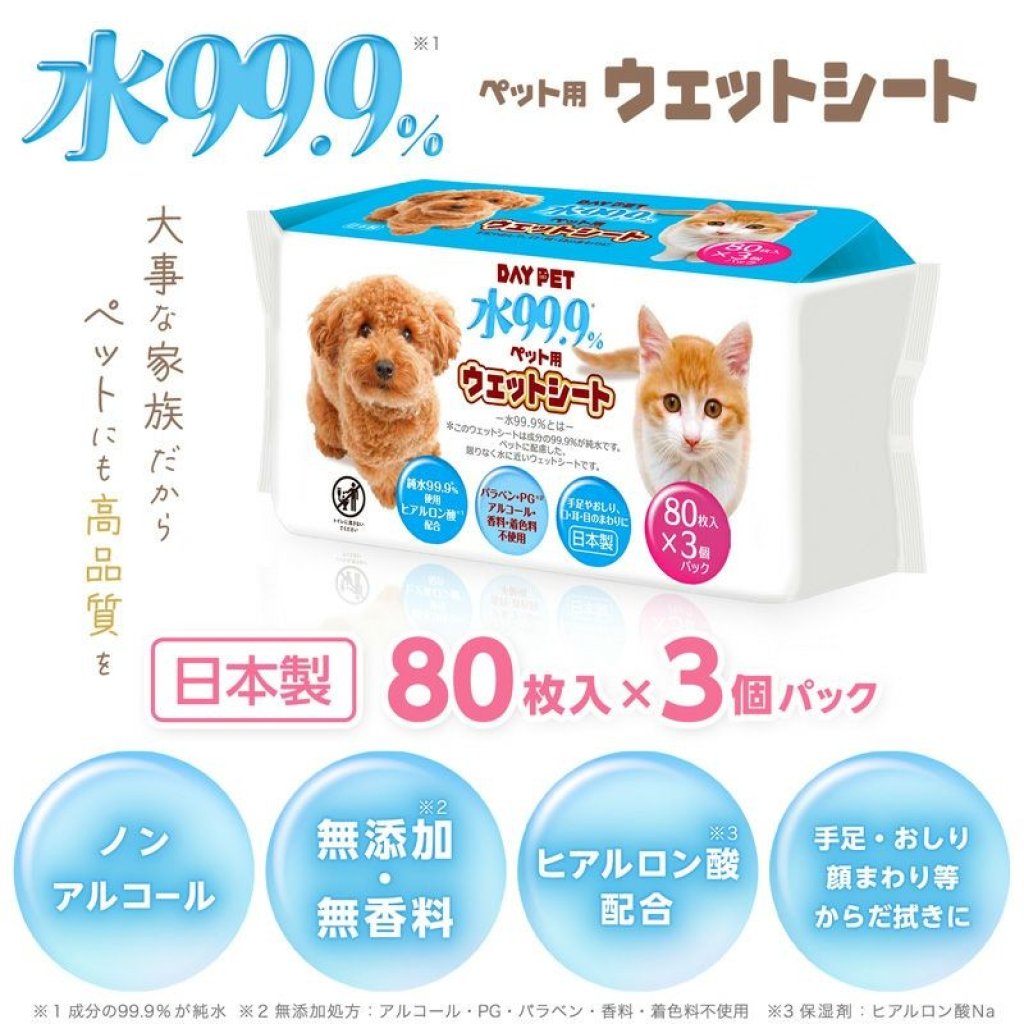日本 LEC DAY PET 99.9%純水寵物濕紙巾 (80張 x 3包) (貓狗適用)