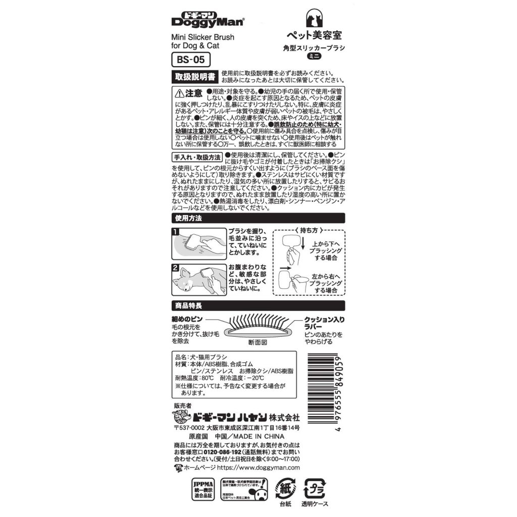 Doggyman 寵物美容沙龍 方形順毛刷 迷你型 BS-05 (貓狗適用)