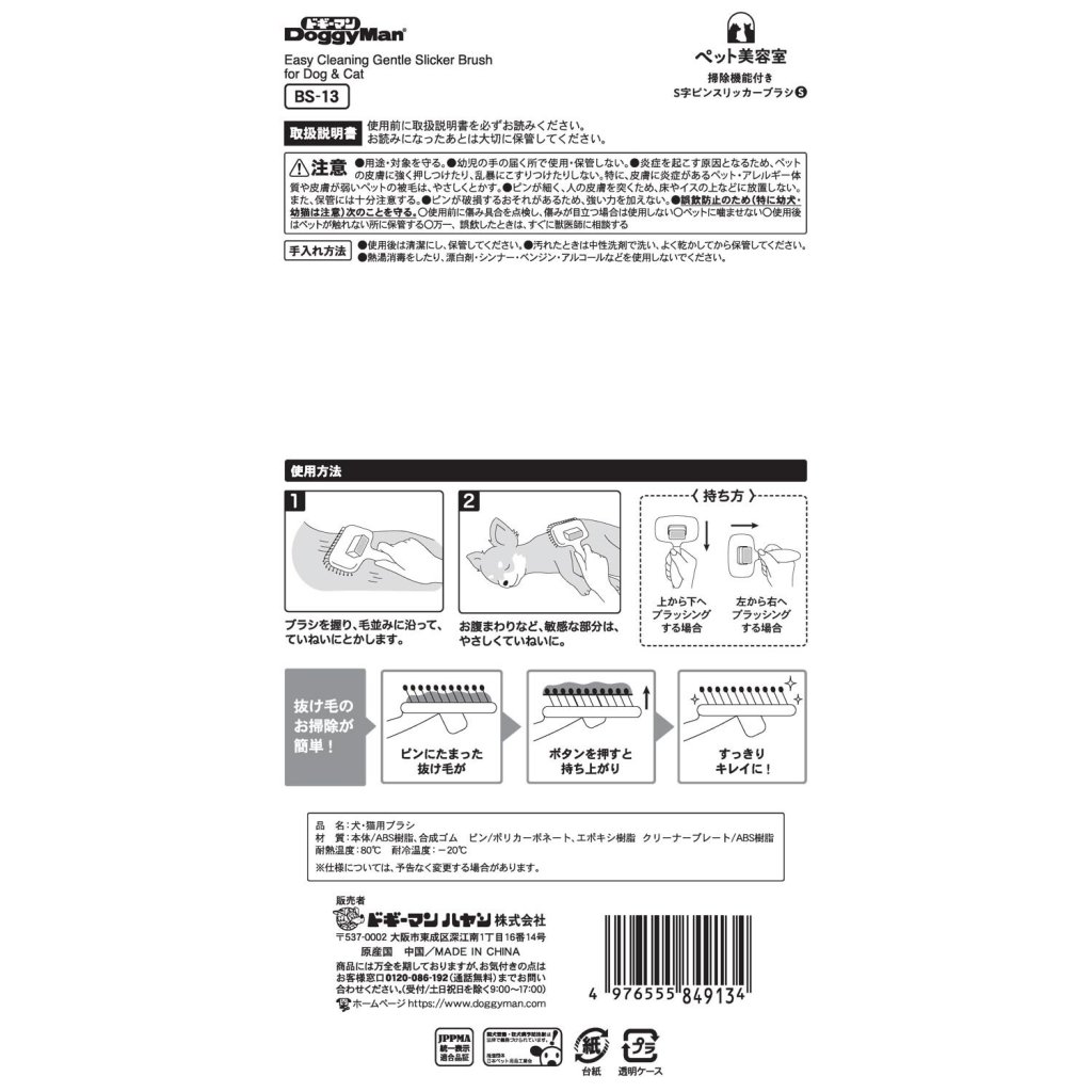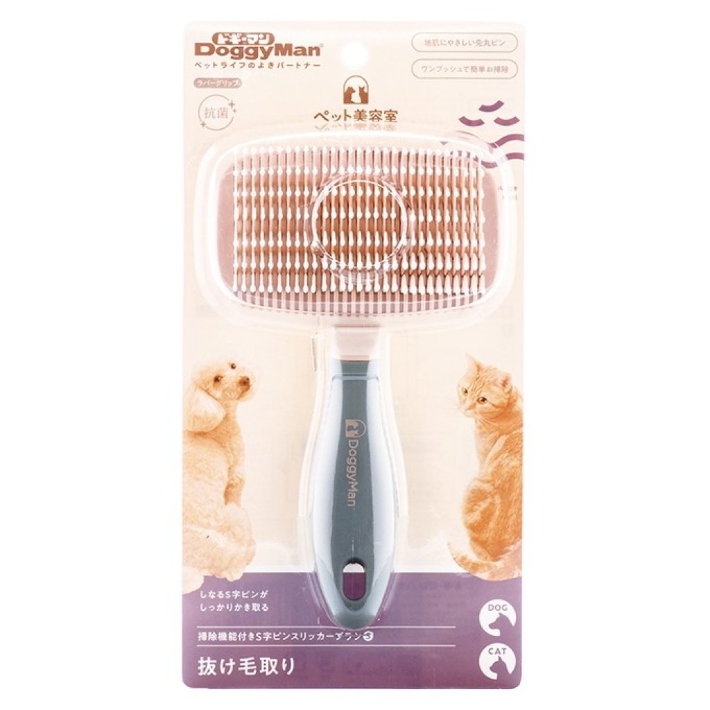 Doggyman Pet Grooming Salon S-shaped pin slicker brush with cleaning function S BS-13 (for Dogs and Cats)