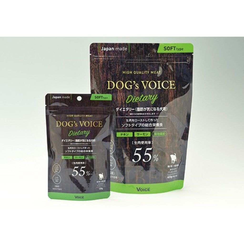 Dog's Voice Dietary (for dogs who are concerned about fat) supports fat burning while dieting. Supports good bacteria, strengthens the immune system, and maintains health. Contains dietary fiber to support a healthy intestinal environment. It is made with chicken as a base and nutritious salmon meat with added dietary fiber.