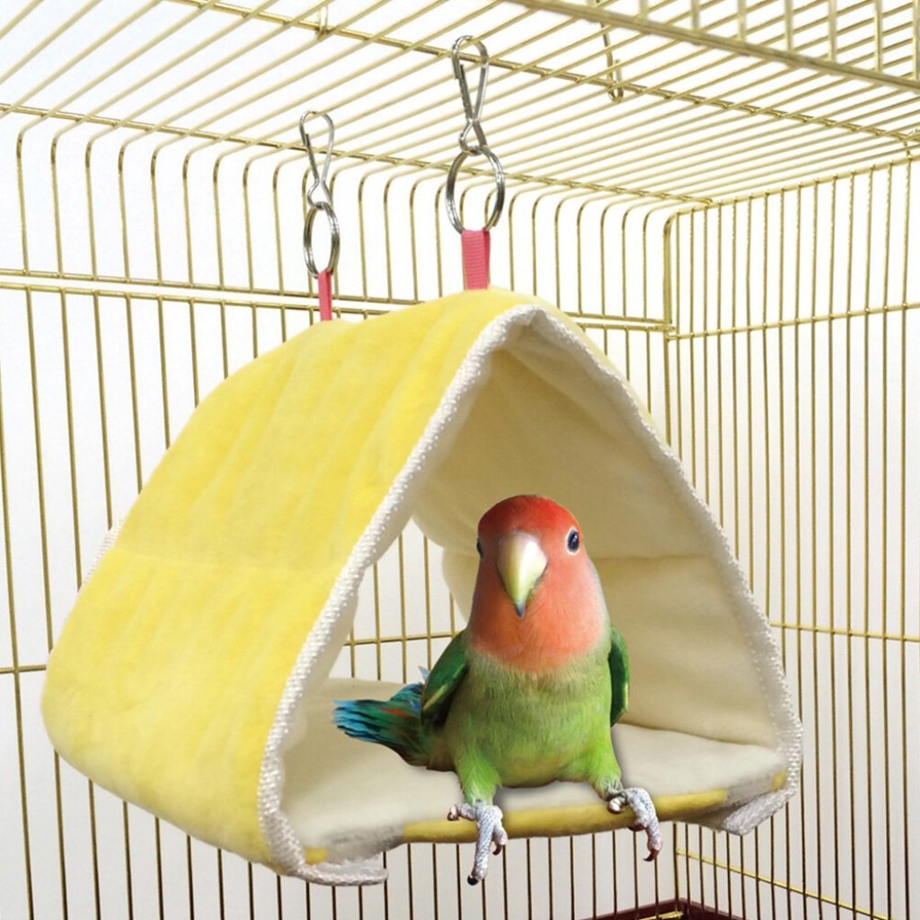 這是一間鸚鵡的可愛布屋。毛茸茸的,觸感舒適,是鸚鵡們休息的空間!