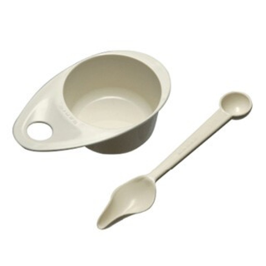 湯匙形設計,貼合雛鳥喙部形狀。容量2.5毫升。深杯附把手,可用於熱水清潔。