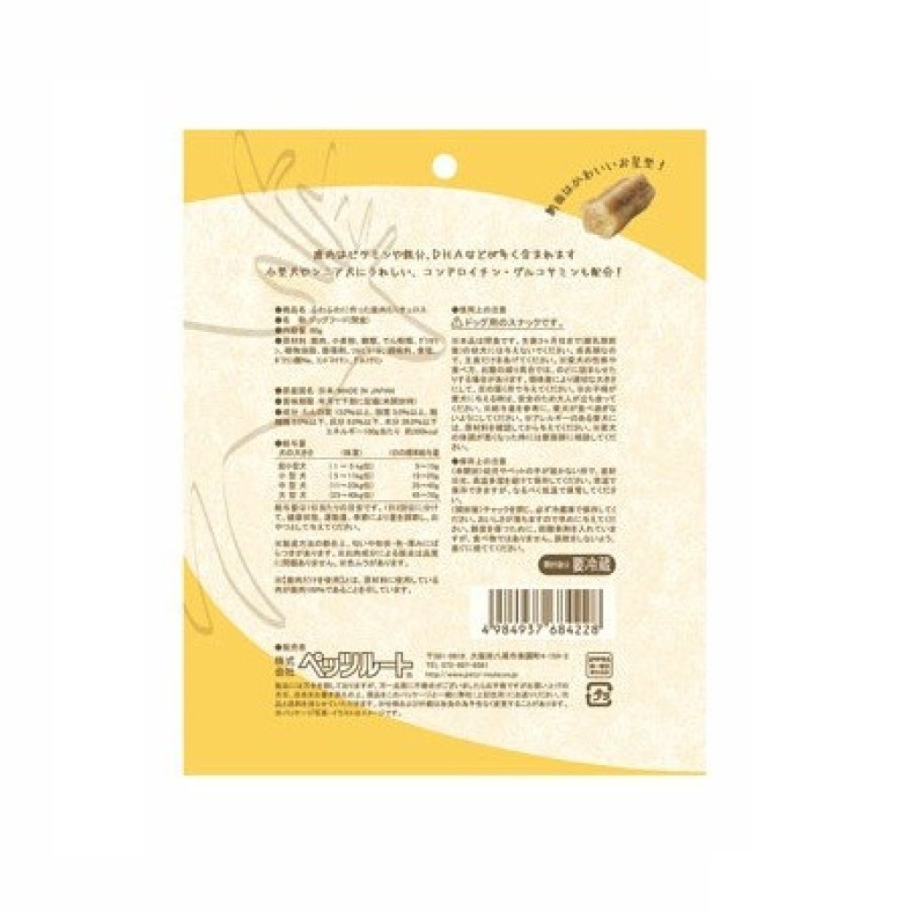 鹿肉、小麥粉、糖、澱粉、甘油、植物油脂、膨鬆劑、山梨醇、調味料、鹽、多聚磷酸鈉、軟骨素、葡萄糖胺