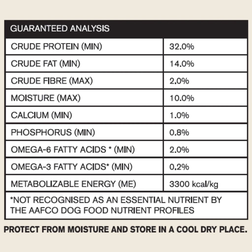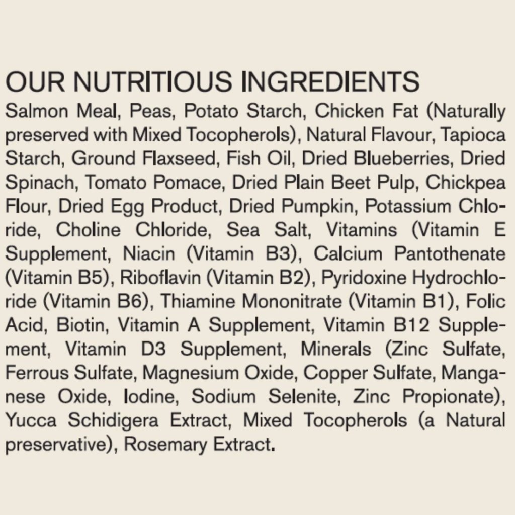 我們精心挑選每種成分,確保其營養價值。例如,我們選用澳洲可持續捕撈的三文魚,為您的愛犬提供必需胺基酸,促進肌肉健康和骨骼強健。陽光下自然成熟的豌豆富含維生素、礦物質、蛋白質、纖維和抗氧化劑,有助於消化;而我們的海洋魚油富含歐米伽脂肪酸,有助於維持皮膚和毛髮的健康。