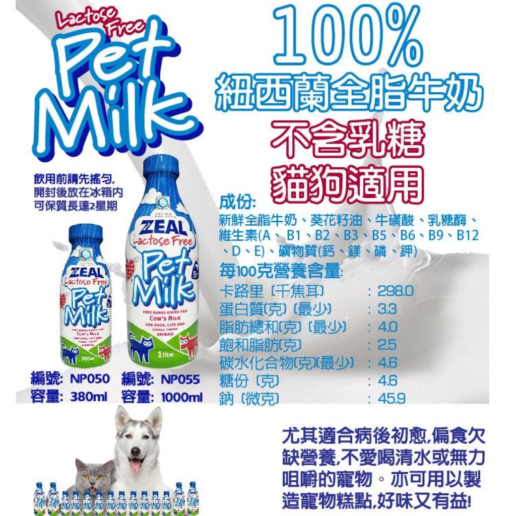 ZEAL MILK 紐西蘭天然無乳糖寵物牛奶 - 貓狗適用 (380ml/1000ml)