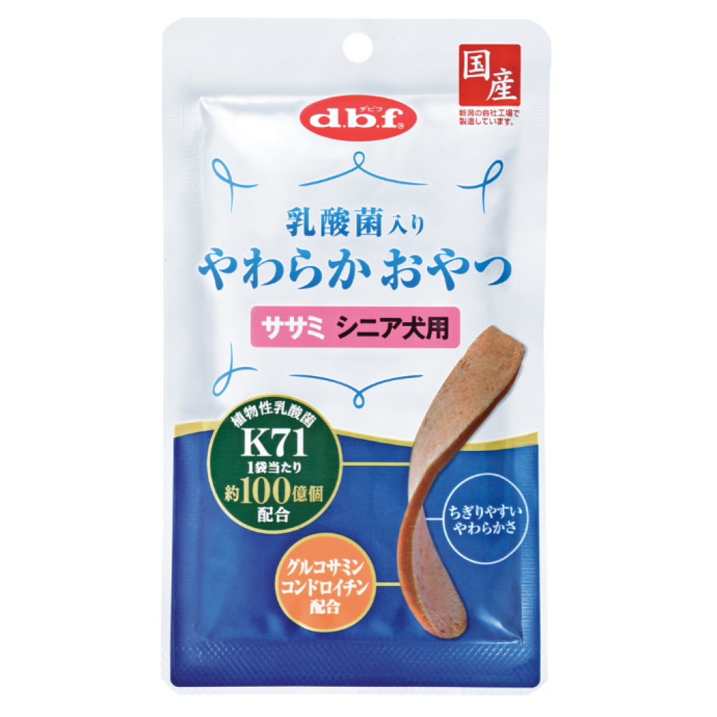 雞胸肉、小麥粉、雞肝、食鹽、鹽酸葡萄糖胺、軟骨素蛋白複合物、植物性乳酸菌K71、甘油(植物性)、甜味劑(山梨糖醇)、鈣、防腐劑(山梨酸鉀)、抗氧化劑(維生素C)、維生素E、著色劑(亞硝酸鈉)