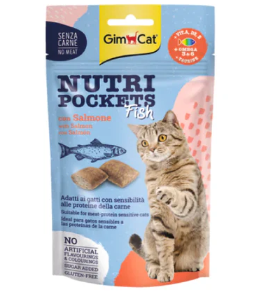 一款美味小食,含有兩種不同的魚,口感鬆脆,對貓咪的健康和成長有很多好處,可以用來做每天獎勵和零食消除貓咪饑餓感。食譜中沒有肉,是對肉蛋白質敏感的貓咪的理想替代品,在不影響味道的情況下為貓咪尋找健康無肉食譜的貓小食。三文魚含有大量Omega 3 和 6脂肪酸,以及維他命A,D3,E和牛磺酸。不含麩質,不添加糖,人工香料和色素。