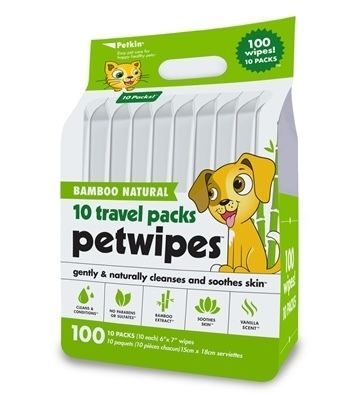 Petkin - 天然青竹蘆薈潔身紙 - 旅行裝 100片(獨立包裝 x 10包) 寵物濕紙巾 (適用於狗、貓、幼犬、幼貓) - 原裝香港行貨保證