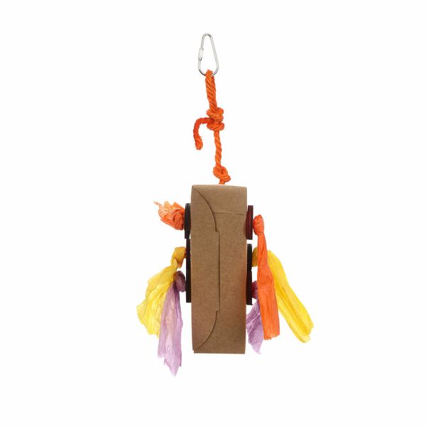 這個有趣的鳥玩具裝在一個披薩形狀的紙盒裡,裡面有五顏六色的紙。您可以享受兩種不同的質感:用結將木質紐扣固定到位的皺紋紙,以及盒子裡面的薄而矩形的紙片。鳥類已經發育出視力並且喜歡色彩鮮豔的玩具。它能激發鳥類的好奇心和探索意識,幫助鳥類緩解壓力和增加運動量。它由紙和松木製成,可以安全地戳、咀嚼和咬!末端的登山扣可輕鬆將其固定在籠子上。